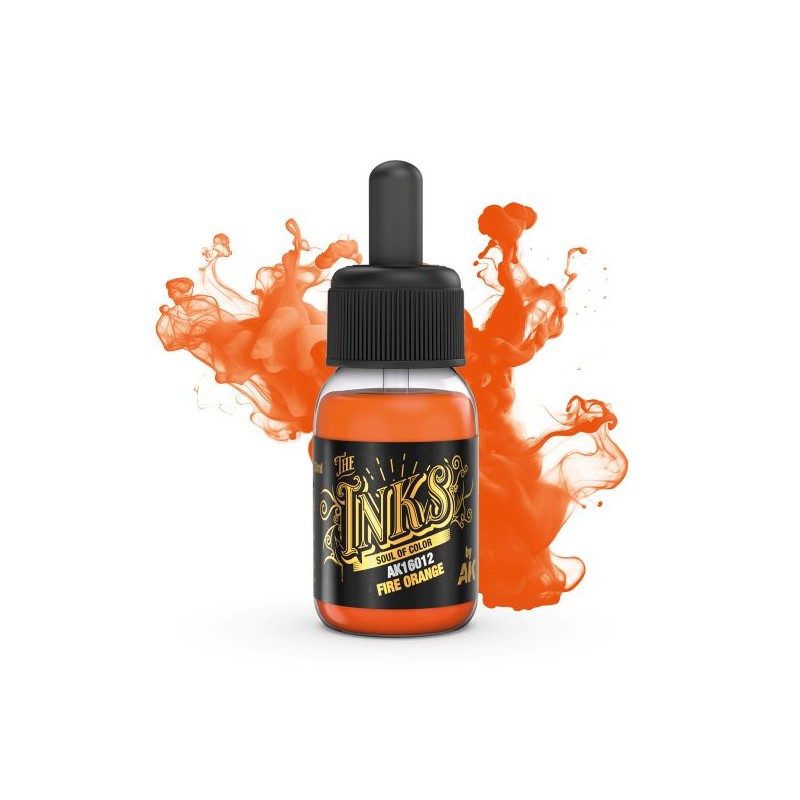 AK Interactive 16012 Fire Orange Inchiostro 30 ml per pennello e aerografo