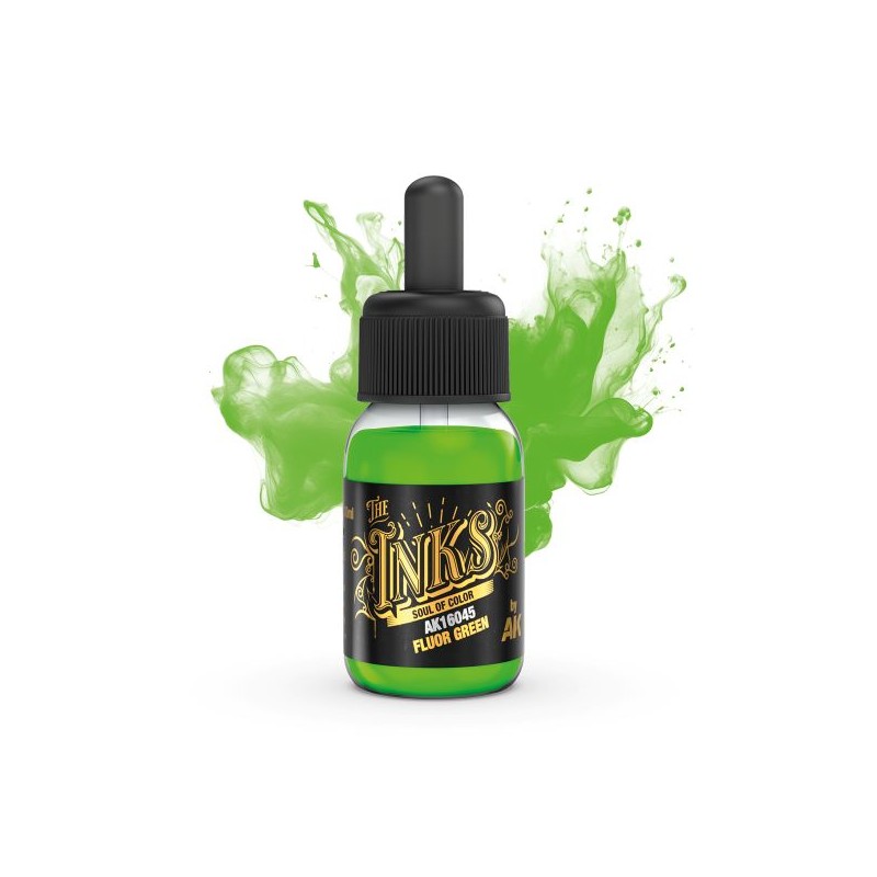 AK Interactive 16045 Fluor Green Inchiostro 30 ml per pennello e aerografo